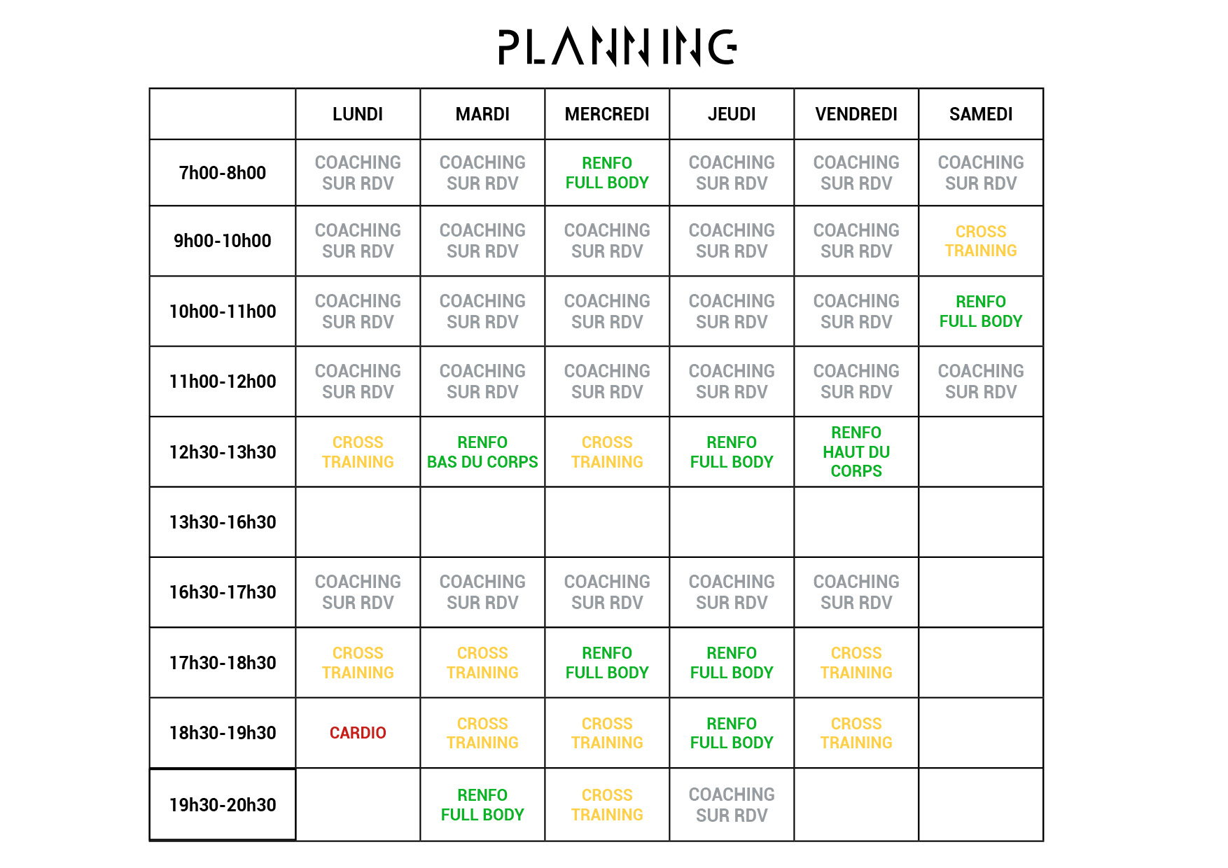 Découvrez ci-dessous le planning des activités et séances proposées chez Hybrid Studio.